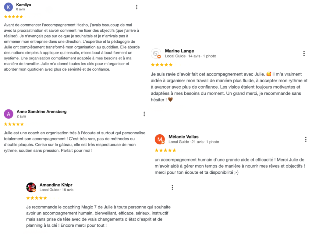 Je comprends ta frustration et ta peur de perdre encore plus de temps alors que tu en manques déjà. Mais si tu ne changes rien, la situation ne s’améliorera pas toute seule ! Comme on soigne une maladie, il faut aussi prendre soin de son business. Le format 3x1h30 permet de vraiment comprendre ton fonctionnement et d’avoir un vrai impact. Plus vite tu passes à l’action, plus vite tu verras des résultats sur ton business et ta charge mentale !